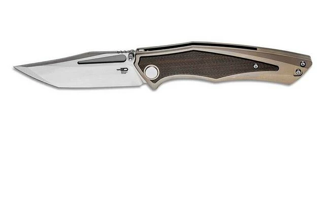 The Bestech Togatta BT2102 is a cool and large EDC pocket knife. Striking is the shape of the blade which has a clear Tanto shape, but looks like a Trailing Point or even Clip Point when you look at the spine. A cool combination!