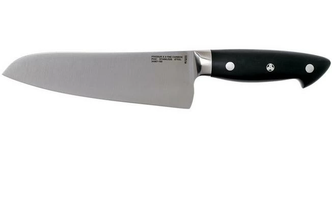 The Bob Kramer by Zwilling Euro Essential Santoku knife is a versatile Asian kitchen knife. A little lighter and more compact than a chef’s knife. The knife effortlessly cuts through vegetables, fruit, meats and fish. Cut, crush and scoop. It is all possible with the multifunctional Santoku.