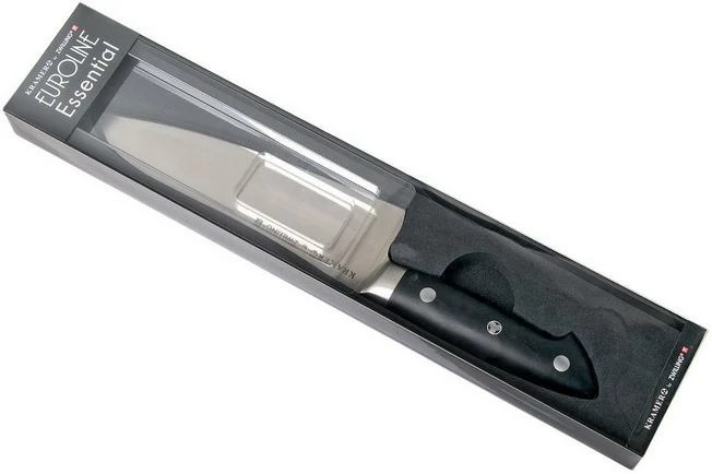 The Bob Kramer by Zwilling Euro Essential Santoku knife is a versatile Asian kitchen knife. A little lighter and more compact than a chef’s knife. The knife effortlessly cuts through vegetables, fruit, meats and fish. Cut, crush and scoop. It is all possible with the multifunctional Santoku.