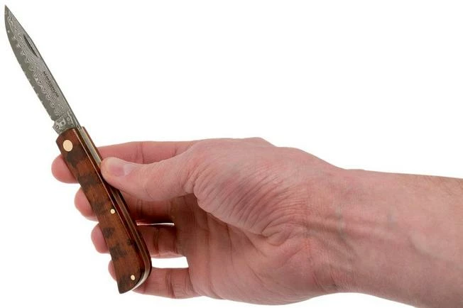 The Böker Magnum Snake Rangebuster Damascus 01RY141DAM is a cool and affordable gentleman’s knife. It is remarkable that a knife with these materials can be produced for such a price. The design might remind you of the classic Sod Buster pocket knives known mainly from traditional American brands. Simple shapes, incredibly effective.