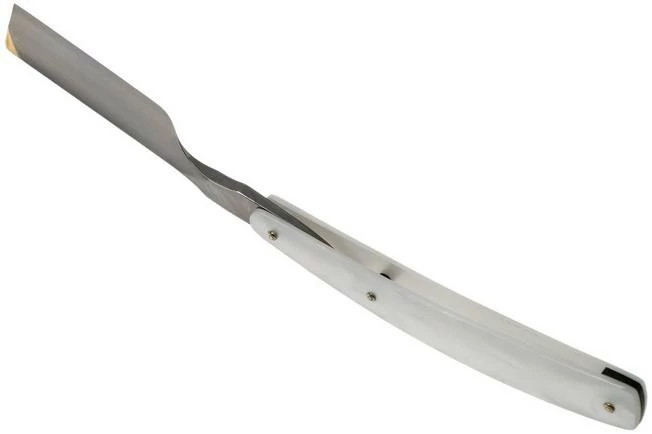 The Böker Manufaktur Mother of Pearl 2.0 140556 is a top-quality straight razor. A stunning razor with imitation mother-of-pearl, and gold accents on the blade. Böker has been producing straight razors for over a hundred years and has an excellent reputation in this field. This straight razor is made in the Böker workshop in Solingen, Germany.