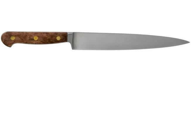 With its long and slim shape this Böker Patina carving knife is the perfect knife when making precise cuts in meat and fish. With this knife you can easily cut wafer-thin slices and cubes. The carving knife is a little more flexible than other types of knives and easily moves through meat.