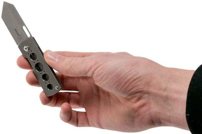 The Böker Plus Pelican is a compact and light-weight pocket knife, designed by Brad Zinker. You immediately recognize his vision in this design. The holes in the handle are typical for his work. The blade of the Pelican is made from VG10. You can easily open it with one hand by using the thumb hole. When opened the framelock blocks the blade. In terms of finish Zinker has chosen a coarse stonewash. Both the frame and the blade have a stonewashed finish. Because of this finish traces of use barely stand out. The shape of the blade is a so-called Tanto. Optimized for drilling and therefore perfect for opening packages.