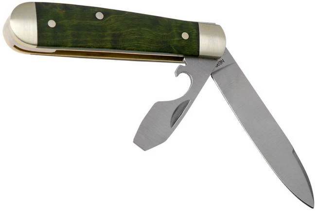 The Böker Swell-End Jack Curly Birch Green 112916 is a classic pocket knife, produced in Solingen, Germany. A traditional ‘Jack Knife’ of which the end of the handle is broader in the back. Hence the ‘Swell End’.