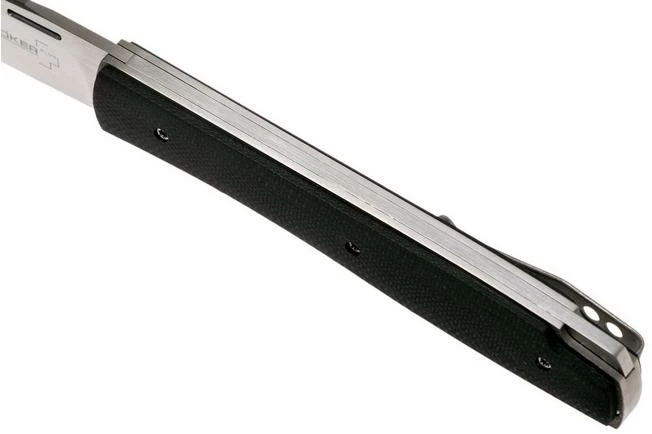 The Böker Plus Urban Trapper Backlock is a very slim and stylish pocket knife, designed by Brad Zinker. Because of its small size and titanium frame this knife weighs next to nothing. A stylish knife to cut a piece of steak, open a box or peel an apple. A true gentleman’s knife.