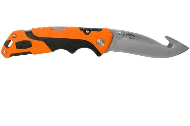 The Buck Folding Persuit Guthook 660ORG is a versatile and affordable hunting knife, made in the United States. Even though Buck might be known for its classic-looking hunting knives, it demonstrates with the Persuit collection that modern knives are also something they are good at.