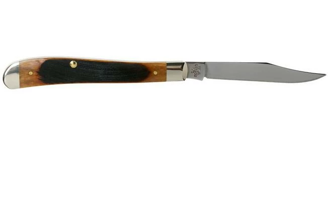 The Case Slimline Trapper is a simple, traditional pocket knife. It has a long and slim blade with a clippoint shape. You open it with two hands and when opened the blade is locked by a slipjoint. The shape is based on the classic Trapper design.