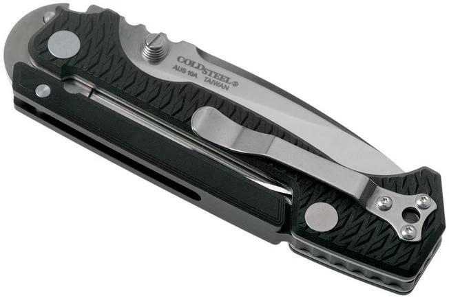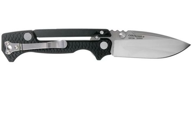The Cold Steel AD-15 is a large, robust pocket knife, designed by Andrew Demko. This American designer is responsible for a large part of Cold Steel’s folding knife successes. The AD15 is another masterpiece. One of Demko’s most famous inventions is the Tri-Ad lock. This rock-solid lock is often tested and proven to be the strongest on the market. This production version of Demko’s custom AD-15 introduces another new locking mechanism: the Scorpion Lock. Just like a scorpion’s tail hangs over its own body, the lockbar bends from the spine of the handle down to the blade.