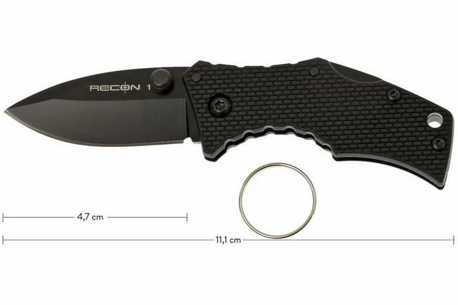 The popular Recon 1 has now come in a very small version: the Micro Recon 1. It shares a lot of features with its big brother: the indestructible Tri-Ad lock, the G10 handles and the AUS8A-steel blade with a black coating. The thumb stud ensures that also this little knife can be opened with one hand. Despite the dimensions, the biggest difference with the large version is the fact that the pocket clip has been replaced by a keychain ring. This version has a spearpoint-shaped blade.