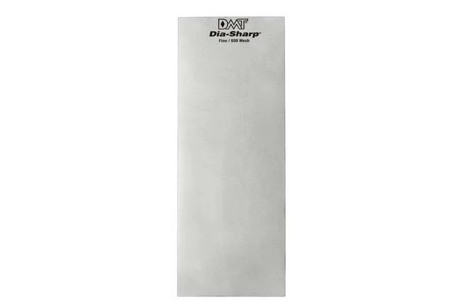The DMT DiaSharp 10×4 fine/coarse is a large double-sided diamond sharpening stone. The coarse side is to sharpen your blunt knife and the fine side is the next step to achieve a razor-sharp edge. Diamond-coated sharpening stones quickly remove material and, depending on the grain size, sharpen your knives to razor-sharpness. This DMT DiaSharp Bench Stone is quite large in size, which makes it suitable for all types of knives, including large kitchen knives. The advantage of diamond sharpening stones is that they don’t have to be lapped. For this DiaSharp stone, the diamond particles were added to a 9 mm thick steel sheet. As such, the flatness of this sharpening stone is guaranteed.