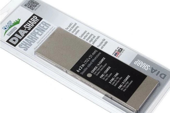 The DMT DiaSharp Bench Stone 6×2 D6CX double-sided, coarse, extra coarse is a compact sharpening stone. With one coarse side and one extra coarse side you can use the stone for many sharpening purposes. Diamond-coated sharpening stones quickly remove material and, depending on the grain size sharpen your knives razor-sharp. The advantage of diamond sharpening stones is that they don’t have to be lapped. With this DiaSharp stone the diamond particles are added to a 6 mm thick steel sheet. As such the flatness of this sharpening stone is guaranteed.