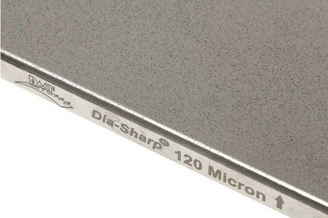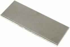 Diamond stones can sharpen fast and, depending on the grain size, very sharp. This DMT DiaSharp Bench Stone is a good size for all kinds of knives, including large kitchen knives. A major advantage of grinding on a diamond stone is that it does not have to be laid out flat. The DiaSharp stone is mounted on a thick steel plate of 9 mm thick. As a result it stays flat.