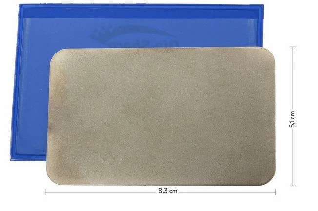 This compact sharpening stone with diamond sharpening surface can even be carried with you in your wallet because of the creditcard-size. This makes the stone ideal for everyone who wants to use a razor sharp knife at all times. These stones do not have the well-known holes pattern of DMT. This has the advantage that, for example, small chisels or other small objects can be sharpened without them getting stuck in the holes.