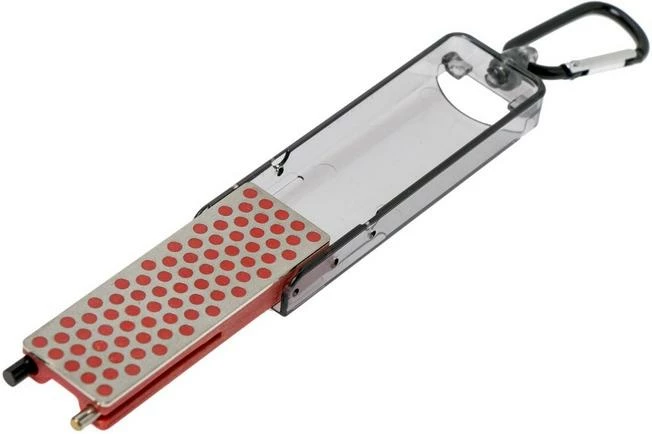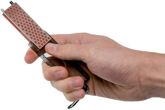 The DMT Survival Sharp 20005 is a practical pocket sharpening stone, comparable to the slightly larger DMT Slydr Sharp. You can use it to sharpen both flat and serrated blades. The core of the sharpener is comprised of a diamond-coated sharpening stone, with the round cut-outs you have grown accustomed to from DMT.