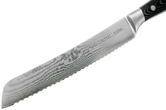 The Eden Classic Damast bread knife is perfect for cutting all sorts of bread. From hard to soft crusts, from soft buns to baguettes: the serrated edge will easily glide through it.