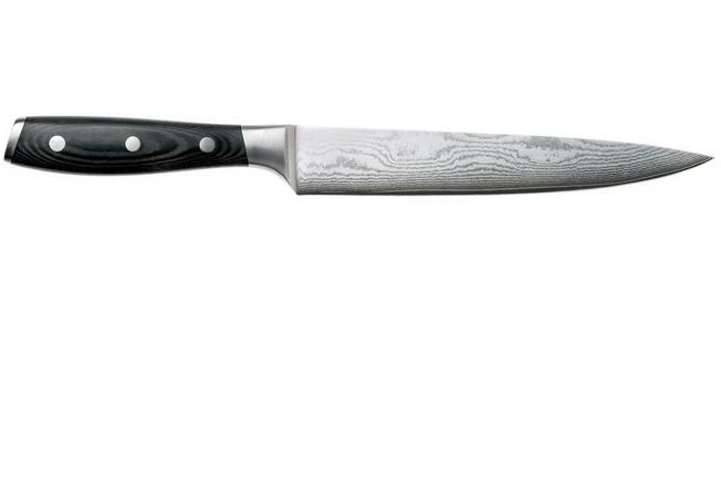 With the Eden Classic Damast carving knife you can cut roasted meat into slices or pieces. This is also called tranching. This is possible with a chef’s knife, but with a carving knife you can cut even thinner slices, often because the blade is narrower.