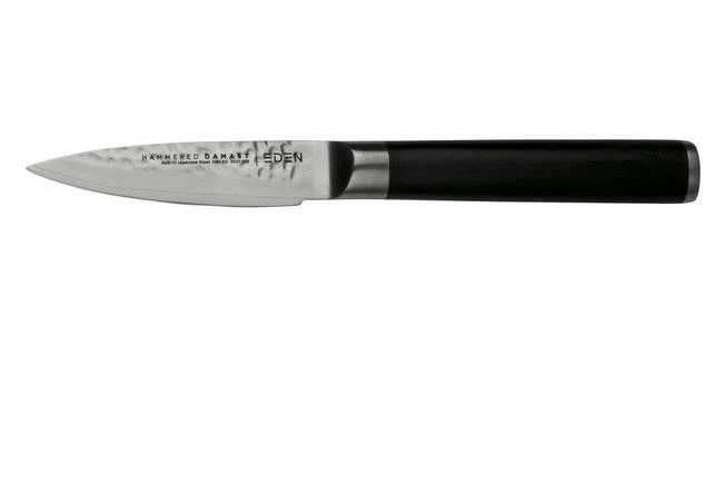 The Eden Hammered Damast office knife 9 cm is a razor-sharp jewel for your kitchen. Elegant yet very practical. The office knife is one of the most popular knives in the kitchen. Thanks to the small blade, this knife is perfect for small, detailed tasks in the kitchen. Use it to cut or peel vegetables and fruit or to open packaging. This versatile knife is indispensable in any kitchen! Excellent detailing and a wooden storage box complete the picture.