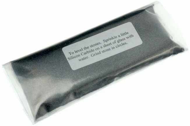Use the flat-tableau together with the grits of the extremely hard silicon carbide to flatten the sharpening stones. Only a little bit of the silicon carbide is needed to flatten the stones. By means of rotating