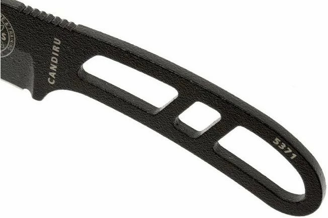 The Candiru of ESEE Knives is the smallest knife in their collection. That goes for the size, but not for the quality and employability. Also this knife is made of the, by ESEE Knives much applied, 1095 carbon steel. This has sublime cutting properties and is not hard to sharpen. The main drawback, an increased rust susceptibility, is to a large extent offset by the high quality powder coating which covers the steel. It remains wise to keep this knife dry and possibly oil it a bit at times.