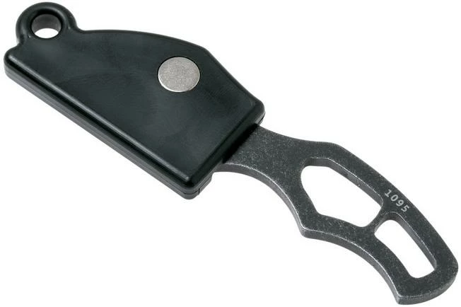 The ESEE Pinch is a practical and compact neck knife, designed by James Gibson. Even though the total length is no more than 8.8 cm, the Pinch is very usable. Because of the two finger grooves you have a comfortable grip, and the pointed wharncliffe blade cuts well. The blade is made from 1095 carbon steel. A tough type of steel that is easy to sharpen. Do, however, be careful with moisture, salt and acids: 1095 isn’t corrosion resistant.
