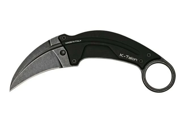 The Extrema Ratio K-Talon is a compact karambit knife. The knife is incredibly robust thanks to the full-tang construction. This means that the blade and ring are made from one piece of steel. To which the scales are mounted.