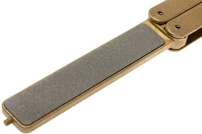 The EZE-LAP EZE-Fold 520 is a double-sided diamond sharpening stone with a coarse grit size (250 grit) on one side and fine grit size (600 grit) on the other side. The double-sided sharpening stone has gold handles that fold around the stone when folded. As a result, the stone is always well protected. It’s ideal to take with you when travelling, hunting or fishing, but also handy for at home.