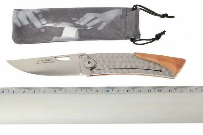 Compact pocket knife that combines high-tech with traditional manual labour. The knife can be opened with one hand. The handmade handle ensures it feels great in hand.