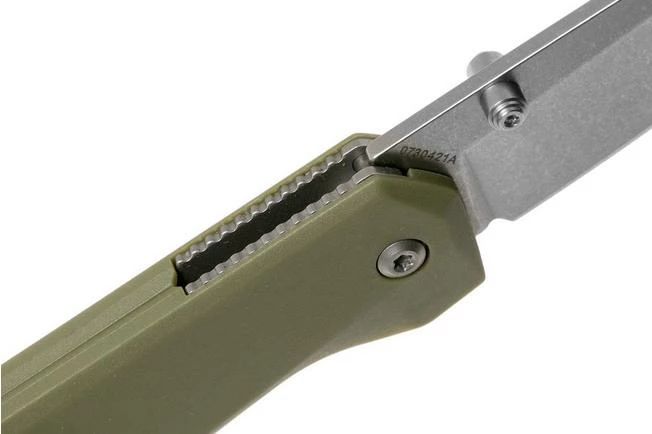 The Gerber Fuse 30-001876 Green is a functional pocket knife for daily use. Around the house or in nature. The Gerber Fuse feels at home anywhere with its functional droppoint-style blade. It also looks a bit like a wharncliffe blade shape. The blade is made from 7Cr steel. A good, stainless type of steel.