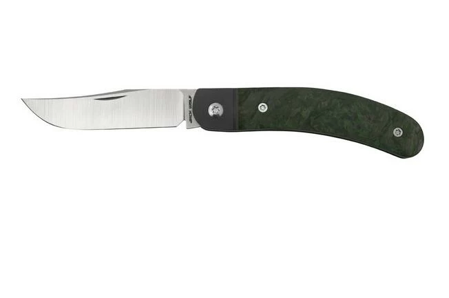 With the Jack Wolf Knives Javelina Jack Fat Carbon Dark Matter Green, Benjamin Belkin of Jack Wolf Knives once again releases a stunning design with a fantastic finish. The Sowbelly pattern owes its name to the round shape of the handle, which is reminiscent of a pig’s belly. The name ‘Javelina’ is a subtle nod to this pattern, as it’s a different name for the South American skunk pig or peccary. All in all: a great gentleman’s knife of the highest-quality!
