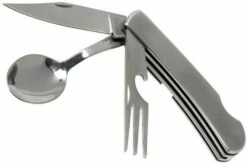 The KA-BAR Hobo Outdoor Diner 02-1300 is a practical tool when you go camping. This tool is enhanced with a blade that locks, a spoon and a fork with a bottle opener. In short: everything you need to enjoy a meal outside. The KA-BAR Hobo Outdoor Diner comes with a solid nylon belt sheath to make sure you can carry the tool on your belt. Great during a hike.