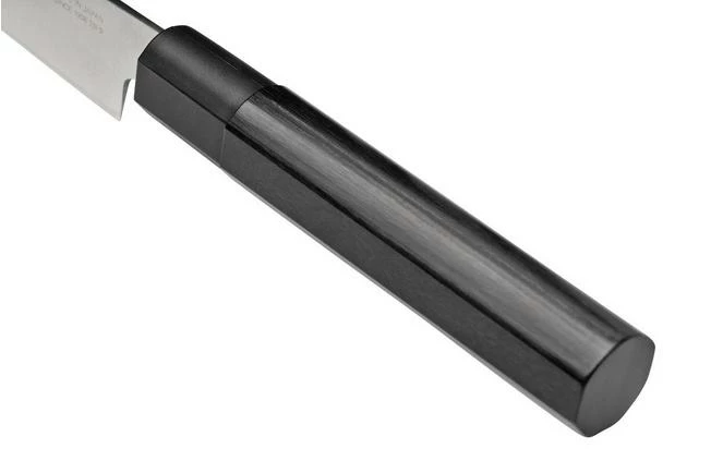 The Kai Seki Magoroku Kinju Yanagiba 18 cm is perfect for filleting fish and cutting meat. This traditional knife has a very minimalist design, with its hexagonal handle made from laminated, reinforced wood. It is a truly classic design, making it a real eye-catcher in the kitchen, but it’s also very comfortable in hand.