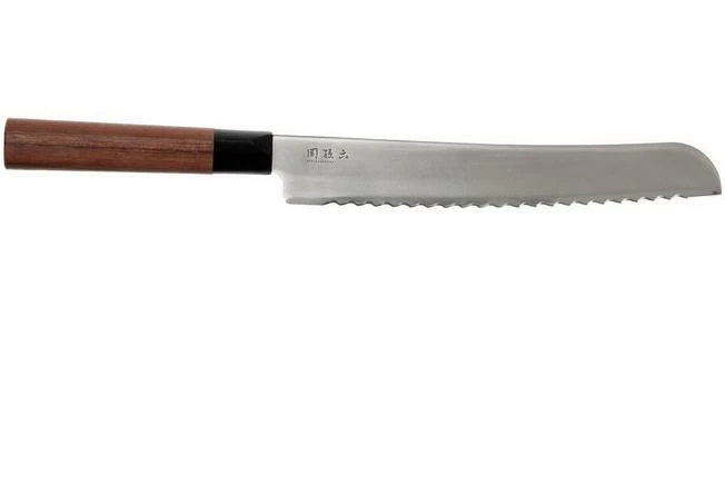 The Kai Shun Seki Magoroku Redwood bread knife 0225B 22.5 cm is made according to traditional Japanese design. It was designed by and for cooking enthusiasts. Special is its beautifully polished blade and wooden handle. Kai knows better than anyone how to design a knife. The blade of the Seki Magoroku Redwood collection is a true jewel. It has a hardness of 58′ HRC and a very thin grind. This makes the blade razor-sharp and perfect to use. A glossy, polished, rounded spine with a very fine polished edge ensures that the knife is comfortable and easy to use. with it cutting bread will be an amazing experience.