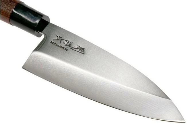 The Kai Seki Magoroku Redwood MGR-0155D deba is made according to traditional Japanese design. It was designed by and for cooking enthusiasts. The polished blade and wooden handle look remarkable. This knife is enhanced with the characterizing deba blade shape with a large bevel on one side. Nevertheless, both sides are sharpened, including the right side of the blade.