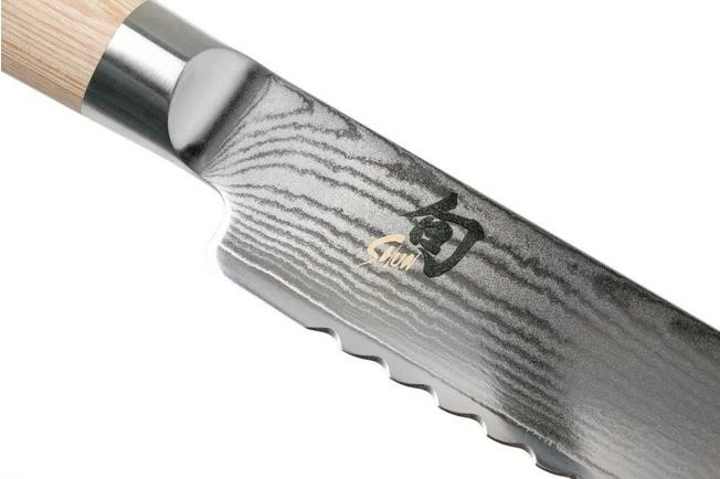 This Kai Shun Classic White bread knife is, with its 23 cm long blade, perfect as an all-round, serrated knife. Use the bread knife to cut hard and soft breads but also cakes, pies and fruit with a hard skin. This proves that you can use this knife for much more than just to cut bread. A real must-have!