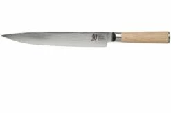 This Kai Shun Classic White carving knife is, thanks to the 23 cm long blade, perfect when carving meat. You could, however, also easily use the knife when filleting fish. During use make sure you pay attention to bones or hard pieces. After all, pieces of the blade can break off. For that reason you should always use a cleaver for the more demanding tasks.