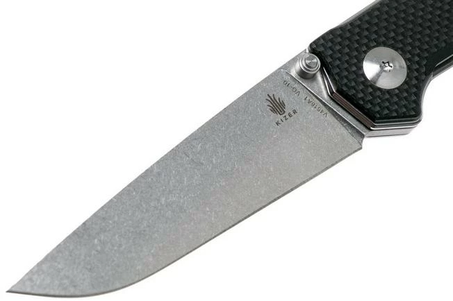 The Kizer Domin V4516A is a practical EDC pocket knife, for an amazing price. It is slim and will easily fit in your pocket. You easily open it with one hand with the double thumb studs, and a solid linerlock locks it when opened.