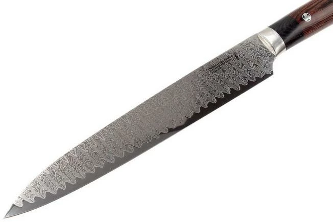 The Kramer by Zwilling Euro Meiji 38260-231 is a carving knife with a 23 cm long blade. The knife was made in Seki, the knife capital of Japan. Every knife from the Euro Meiji series is a real piece of art, designed by the legendary American knife maker Bob Kramer.