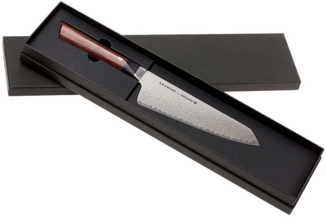 The Kramer by Zwilling Euro Meiji 38268-181 is a chef’s knife with a blade length of 18 cm. The knife has been made in Seki, the knife capital of Japan. Every knife from the Euro Meiji series is a real piece of art, designed by the legendary American knife maker Bob Kramer.