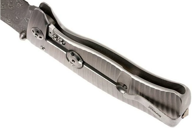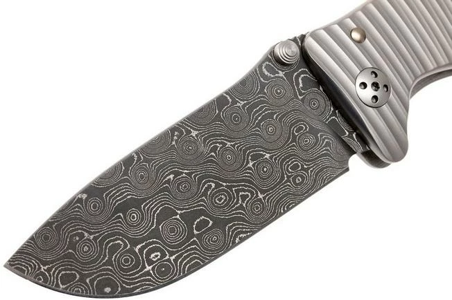 The LionSteel SR1 is a large and luxurious gentleman’s knife. The handle is milled out of one block of titanium. The spine of the handle is enhanced with cut-outs to reduce the weight. Because the thumb studs are placed on both side of the blade it is great for best left and right-handed use. The top of the blade has been enhanced with ridges for additional grip. A decent framelock locks the blade. The end of the framelock is protected by a hardened, steel element.