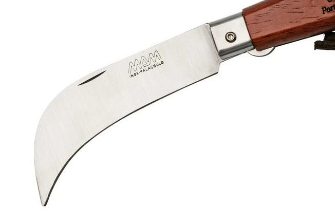 The MAM Harvester is a handy pocket knife. The handle has two finger grooves on the top of the handle, which gives you a lot of control over the hawkbill blade. This blade shape is specially designed for harvesting fruit and mushrooms. It’s the perfect knife to have with you when collecting or foraging food. As with all MAM knives, you open the blade with the nail nick.