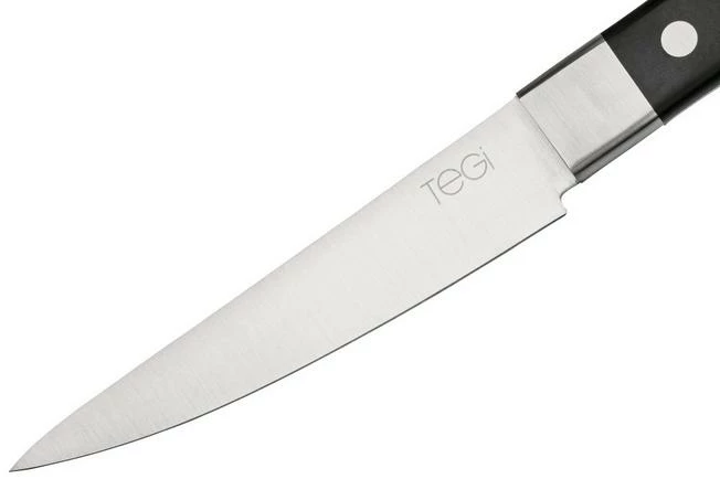 The Maserin TEGI carving knife black is a small and lightweight kitchen knife for preparing meat. The 13 cm blade makes the knife ideal for small and delicate jobs such as removing tendons or fat from pieces of meat.