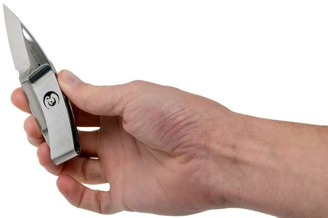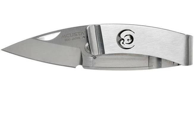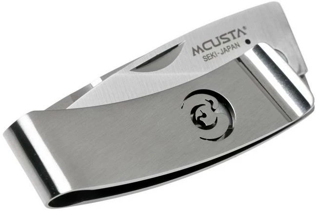 The Mcusta MC-0083 Pocket Clip Kamon Crane is an interesting gentleman’s knife. It’s unique within the Mcusta range. The knives in the Pocket Clip Kamon series have a handle made from a single piece of steel, which has been folded to create a pocket clip. This allows you to easily carry the knife in your pocket or attached to your tie as a tie clip. Very stylish! You open the AUS-8A steel blade with the nail nick, and then a liner lock which is integrated in the handle holds the blade in place.