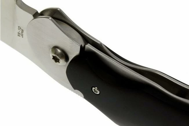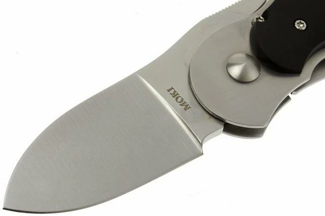 The Rabbit by Moki is a very specially designed compact pocket knife. A small lever ensures that the blade can be unfolded easily. This can be done with both one and two hands. Given the nature of the knife you will often use two hands. With your thumb placed in the curve at the back and your forefinger on the lever you open the blade of VG10-steel in a very natural way. Because the knife is a little bit higher, you have a surprising amount of grip. The ripples on the lever improve the grip even further. The blade is locked in unfolded position with a frame lock.