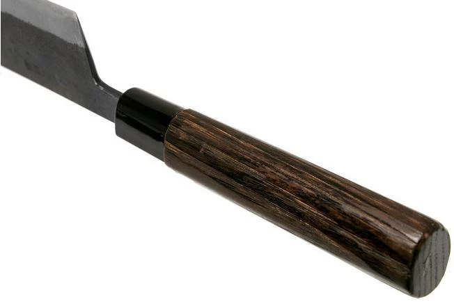 The Munetoshi Nashiji Black Gyuto 24 cm is a stylish, elongated Japanese chef’s knife. In Japanese Gyuto means ‘beef swords’. Sounds sinister, but it merely means that originally this knife was made to prepare meat. Today the Gyuto knife is considered to be an all-round chef’s knife for all cutting tasks in the kitchen.