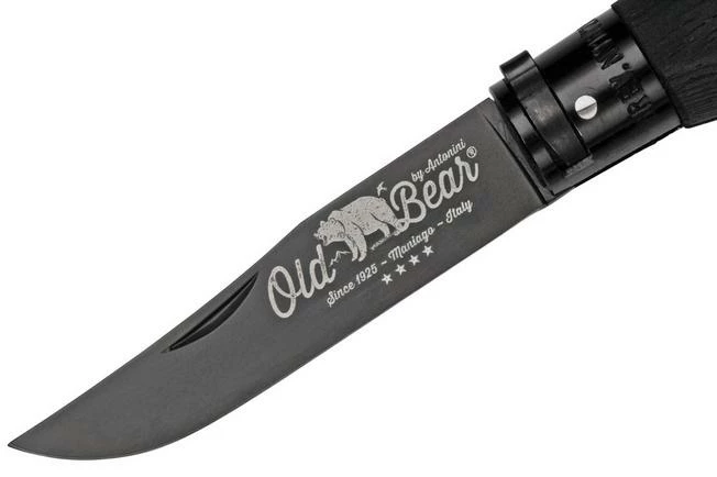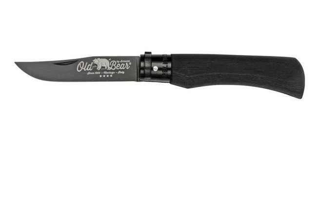 The Old Bear Classical Total Black L is a classic pocket knife from Italy. You easily open the blade with the nail nick. You do so with two hands. As such the knife can legally be carried almost everywhere in Europe. You lock the knife both when open and closed. It is the result of a Lupo-lock mechanism, a ring lock we have seen on similar knife brands but can be controlled with one hand.