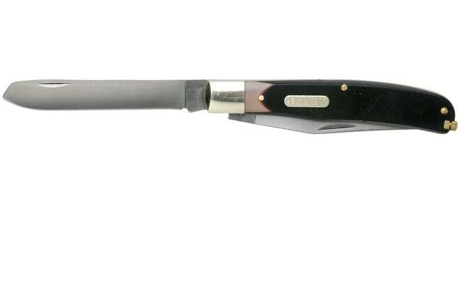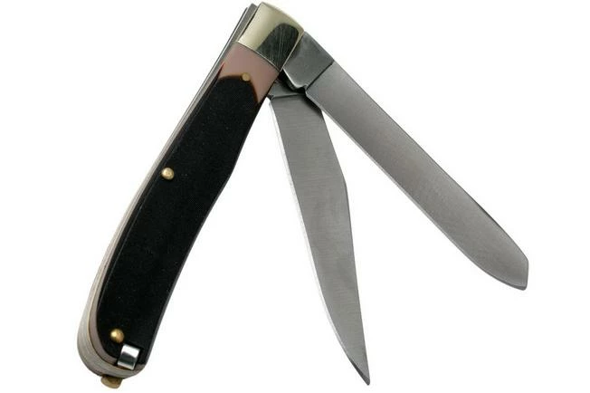 The Old Timer Bearhead Trapper 96OT is an affordable slipjoint pocket knife with a polymer handle. It’s a compact traditional with two blades: a clip point and a spey. You open the blades with two hands, and when opened, a slipjoint locks the blade in place. Not a full lock, only some resistance. This means you can legally carry these knives almost anywhere.