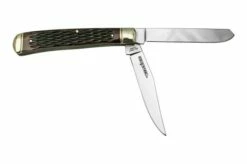 Case Trapper, Tang Stamp Series, Peach Seed Jig, Olive Green Bone 21511, 6254 SS Pocket Knife