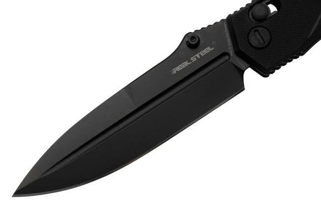 The Real Steel Muninn is family of the Huginn model. It stands out due to the symmetrical design and the dagger-shaped blade. The Muninn was designed by Ivan D. Braginets. He designed a knife for EDC use which could also be used as a tactical knife in the army. While the Huginn leans more towards EDC use, the Muninn is better suited for tactical purposes. You open the blade with the thumb studs or via the slide lock bolt. You immediately notice how easy and smoothly the blade opens and how well the blade is balanced. The dagger-shaped blade is sharpened on one side.