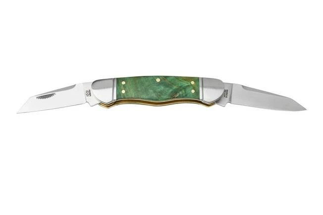 The Rough Ryder Reserve Kayak is a cool, traditional pocket knife in the classic canoe pattern. The knife has two blades, one with a reverse tanto shape and one with a sheepsfoot shape. You can open these with the nailnicks. Since neither of the blades feature a lock, this knife can legally be carried practically everywhere. Perfect for everyday use!