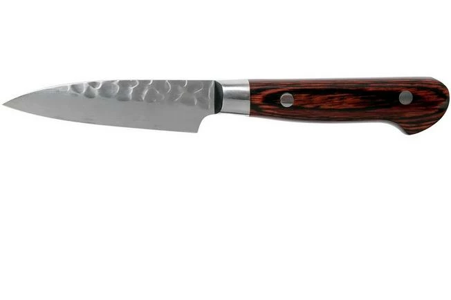 This Sakai Takayuki petty from the 33-layer Damascus collection is, with its 8 cm long blade, comparable to the western peeling knife. Perfect for the more detailed cutting and peeling tasks.